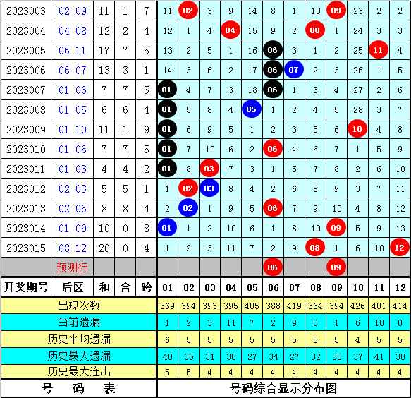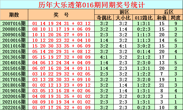 在历史同时开奖中,后区号码和值奇偶为10:6,其中奇号和值走势活跃,本期防奇号和值再次出现,口头和值15。
