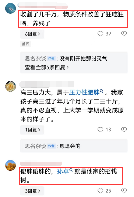 仅仅谁也莫得思到,刚高考完,孙卓相似出当今家东说念主的镜头之中,皇冠体育正网因为形象遭吐槽遭网暴,许多黑粉暗示,孙卓的身段痴肥,不像是高三学生的花样,一般高三的学生学习很累,要是好勤学习一定会很劳累,不会发生身段发福的情形,致使还有养残了这么伤东说念主自爱心的言论。