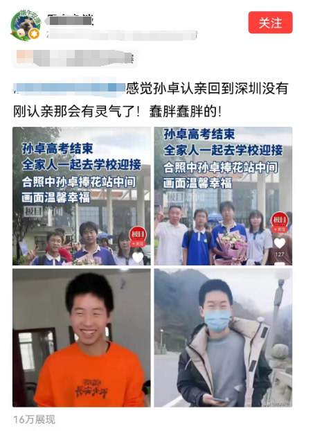 孙卓转头之后,尽管一家东说念主的热度都很高,孙海洋彭四英良伴,如故给了孙卓最大的保护,不思让外界的纷阻抑扰打扰到他的学习,高中学习太攻击了,以至于孙卓在深圳读三年高中,网友都不知说念他在哪个学校就读。